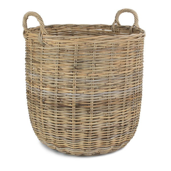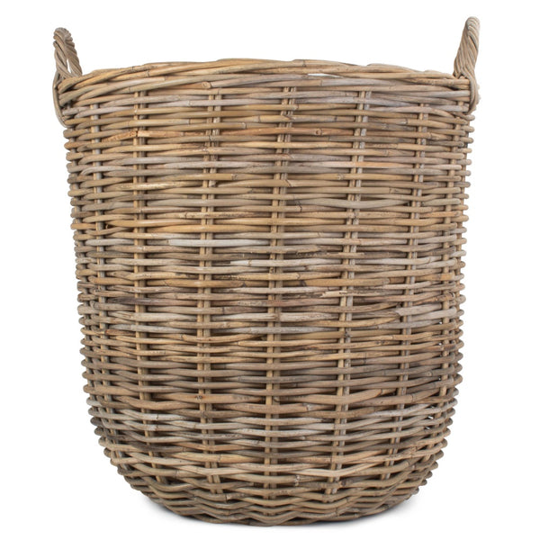 Tall Deluxe Wicker Hessian Lined Rope Handled Log Basket